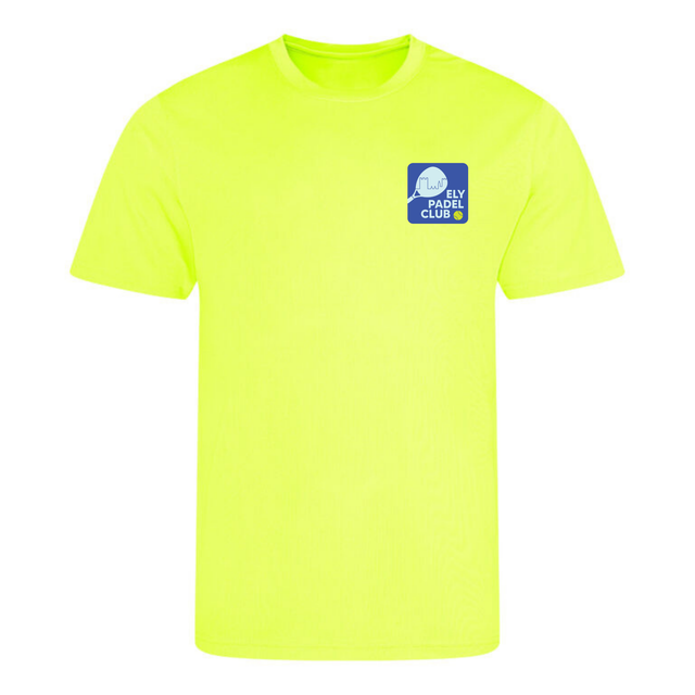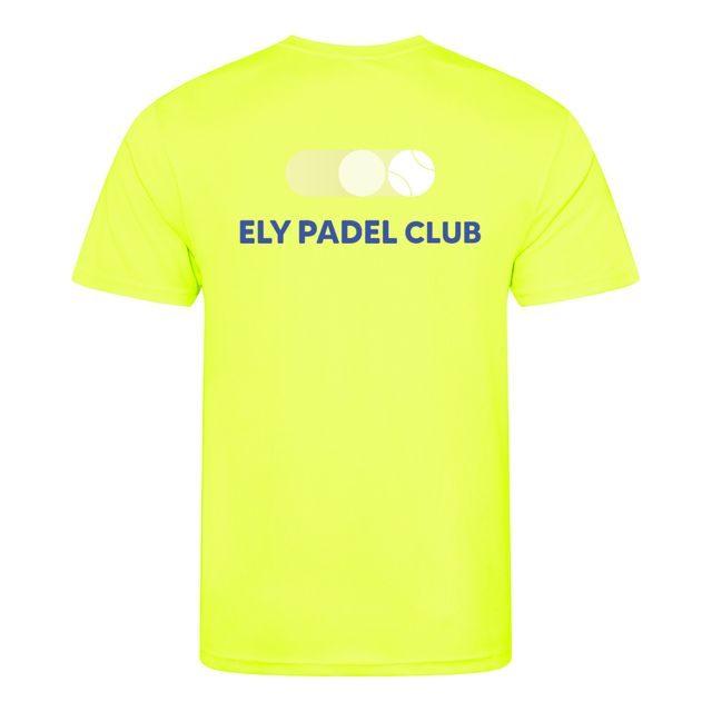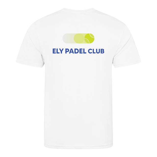 Lightweight high performance sports tshirt, with Ely Padel Club logos printed on front and back.