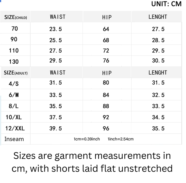 Inner shorts feature a thigh pocket for small essentials. These come in girls through to adult sizes, please see size chart for approx garment measurements.